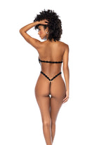 High-cut halter neck bodysuit in polka-dot mesh with lace trims. 8883