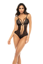 Embrace your daring side with this lace bodysuit, featuring strategic cut-outs, adjustable straps, and a crotch fastening that can be adjusted for the perfect fit.