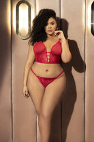 Exude confidence and romance in this versatile babydoll in transparent mesh and lace. Transform it into a set that includes a top with straps and adjustable hook and eye closure on the back, and matching thong. Item No. 7386X