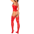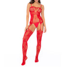 Accentuate your curves with this mesh design and floral details, with a garter belt and attached stockings. Item No. 1105