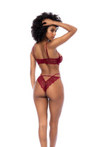 Two-piece set in wavy lace. Includes top with underwire, adjustable straps and a matching panty. 8878