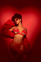 You will be the sexiest gift of the season in this two-piece set. Featuring top with open cups and bow details, adjustable straps and matching bow panty. 8901