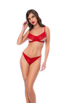 Two-piece heart lace set. Top with underwire and semi-open cups, adjustable straps and matching thong. 8903