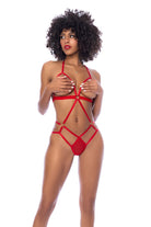 A heart harness teddy to look sexy in comfort. Made with soft elastic bands, it features heart hardware, adjustable halter design, open cups and back. 8906