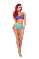 Straight from beneath the waves, this underwater fantasy princess costume features an underwire top and a contrasting, flirty ruffled lace bottom.